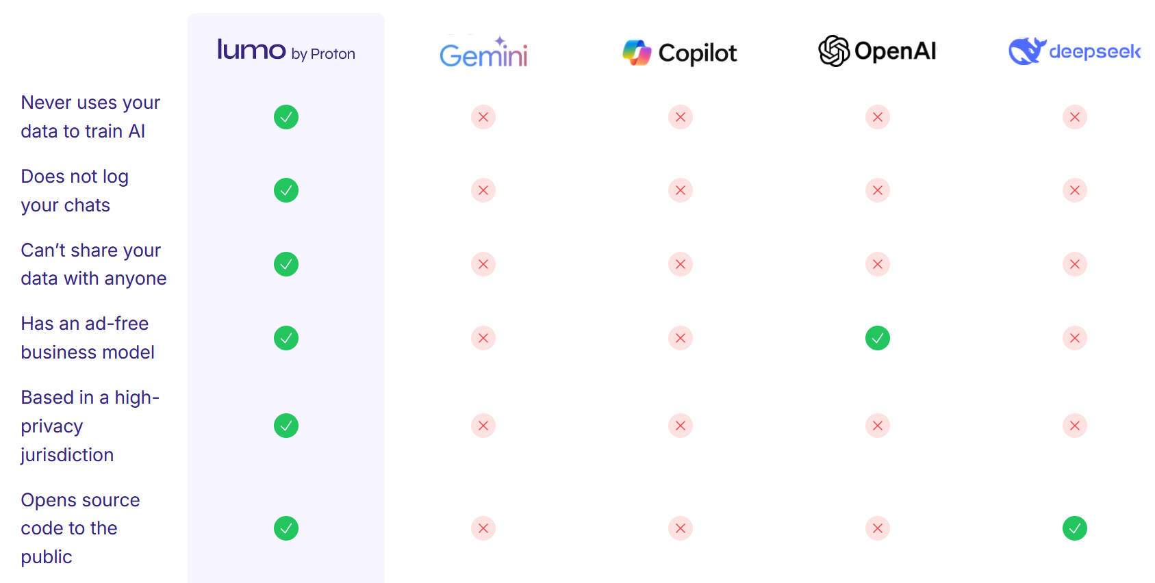 Further they state: “AIs from Big Tech are built on harvesting your data. But Proton is different. We keep no logs of what you ask, or what I reply. Your chats can’t be seen, shared, or used to profile you.”